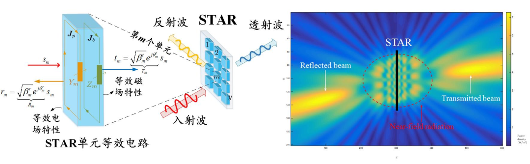 就 STARS 的控制而言,STARS 需要同時(shí)考慮每個(gè)單元折射和反射信號(hào)的控制,于是 STARS 的控制相比傳統(tǒng) RIS 更加復(fù)雜。每個(gè) STARS 陣元需要具備獨(dú)立可調(diào)的表面電、磁阻抗,這樣,每個(gè)單元中的面電流強(qiáng)度(對(duì)應(yīng)電阻抗)和渦旋電流強(qiáng)度(對(duì)應(yīng)磁阻抗)才可以被改變,從而人為的控制其產(chǎn)生的反射和透射信號(hào)的幅值與相位,對(duì)無線信號(hào)的傳播環(huán)境進(jìn)行“人工配置”。