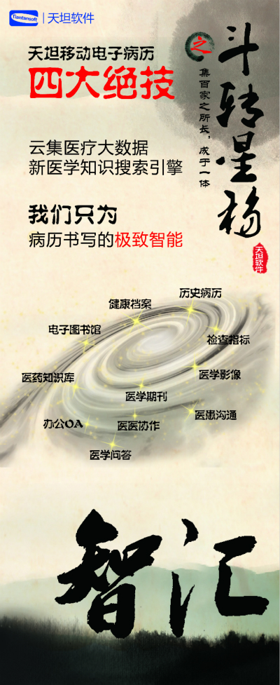 天坦軟件,作為國內(nèi)移動電子病歷的先行者,盛裝亮相京交會。在會上展示了以“天坦移動電子病歷”為核心的醫(yī)院整體信息化系統(tǒng),受到眾多參觀者的關(guān)注。天坦軟件始終堅持以“讓天下沒有難看的病”為宗旨,致力于醫(yī)療事業(yè)發(fā)展。為中國醫(yī)療衛(wèi)生行業(yè)的信息化建設(shè)以及個人健康服務(wù)提供從硬件到軟件、從技術(shù)到服務(wù)的全面解決方案,是中國醫(yī)療信息化市場中快速成長的獨立軟件廠商之一。數(shù)年來,一直堅持研發(fā)以移動電子病歷為核心的醫(yī)院信息化系統(tǒng),從移動框架的病歷編輯器到跨平臺的移動醫(yī)療解決方案,為整個病歷信息化行業(yè)注入了極強的創(chuàng)新活力。 “天坦移動電子病歷”為核心的醫(yī)院整體信息化系統(tǒng)秉承“高效應(yīng)用、信息互通”的基本理念,是專門為醫(yī)院設(shè)計開發(fā)的醫(yī)療信息化系統(tǒng)的核心組成部分。具有高效、安全、穩(wěn)定、易用、移動、智能等特點,除此之外,還具有穩(wěn)定、完全跨平臺運行、功能強大、系統(tǒng)性能卓越等巨大優(yōu)勢。