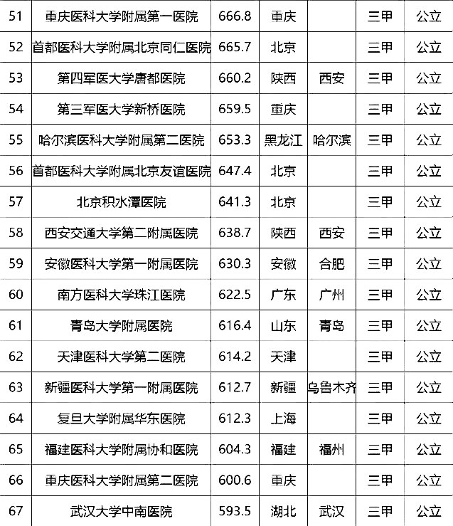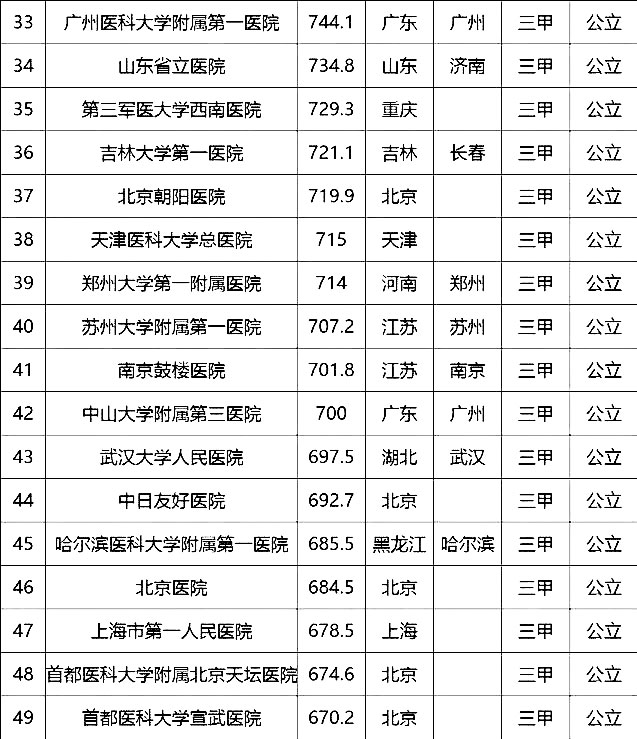 “100強(qiáng)”榜單中,入圍最多的三個(gè)省市分別是北京(16家醫(yī)院)、上海(13家醫(yī)院)、廣東(9家)。“100強(qiáng)”共覆蓋32個(gè)城市,包括4個(gè)直轄市(36家醫(yī)院)、23個(gè)省會城市(59家醫(yī)院)、5個(gè)地級市(5家醫(yī)院)??傮w看,城市的醫(yī)院平均得分和上榜機(jī)構(gòu)數(shù)有一定的相關(guān)性,上榜機(jī)構(gòu)數(shù)多的城市一般得分均值較高,說明這些城市醫(yī)院整體實(shí)力較高。